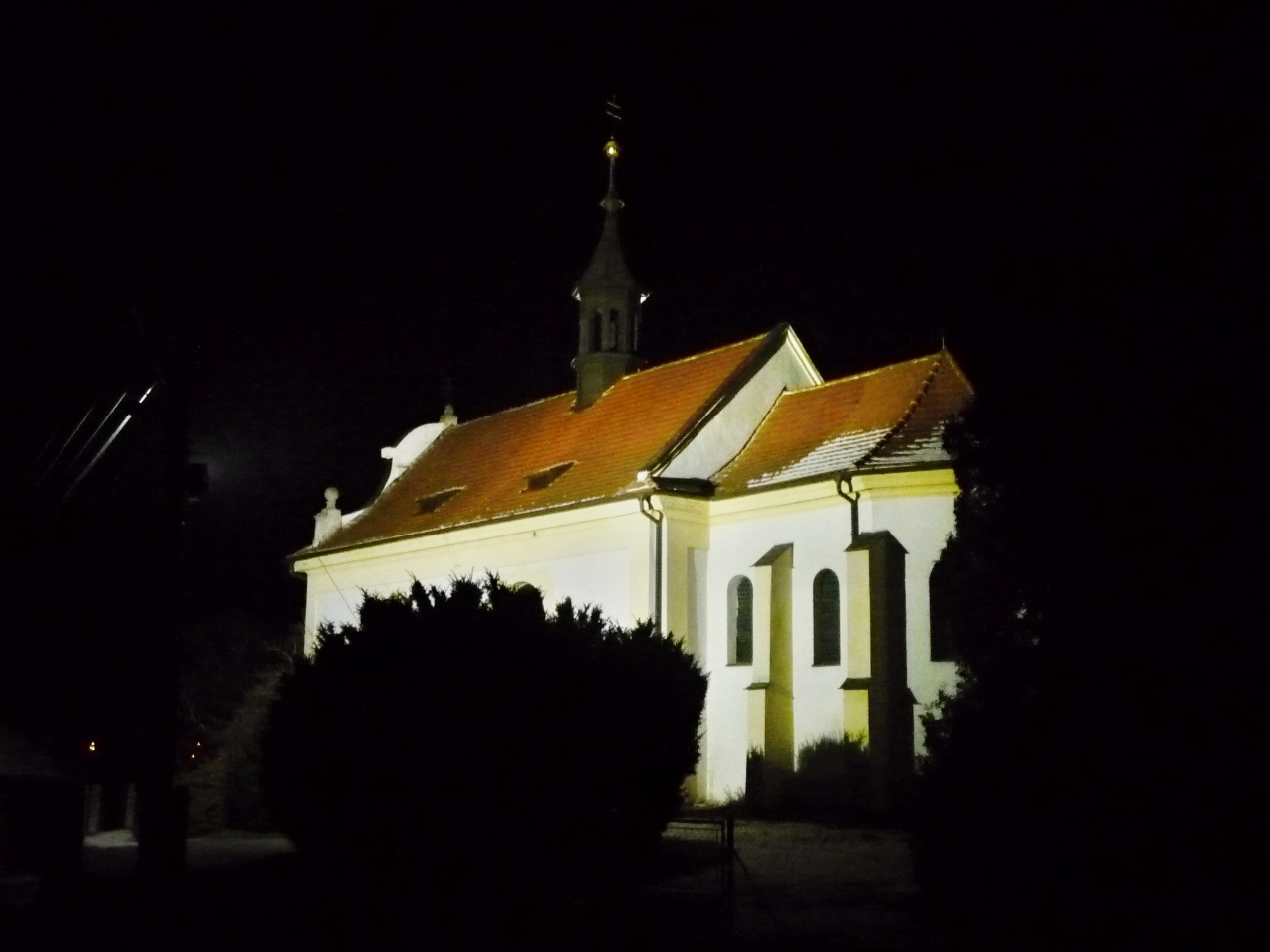 Noční pohled na osvětlený kostel